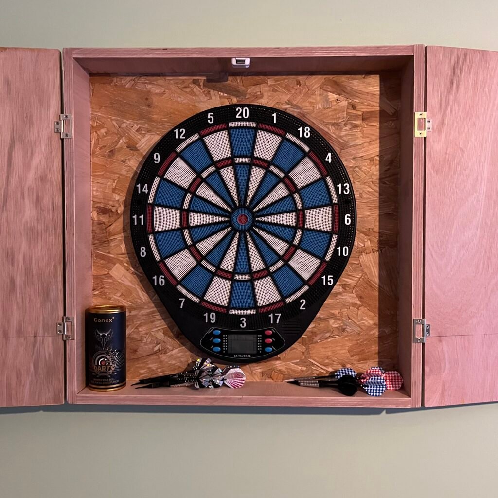 A dart board wood box is a handcrafted wooden enclosure designed to house your dartboard. These boxes often include cabinet doors that close when the board isn’t in use, providing a neat and stylish way to conceal the game. Many designs incorporate storage compartments for darts and scoreboards, blending functionality with aesthetic appeal.