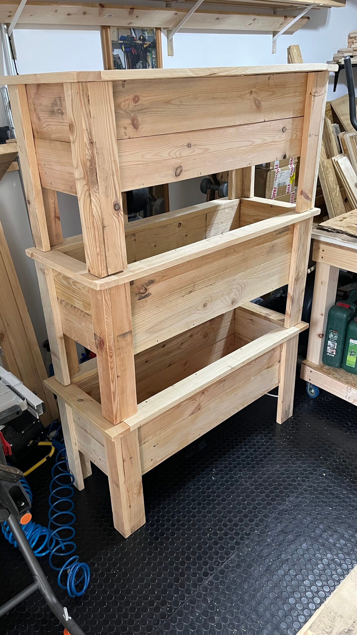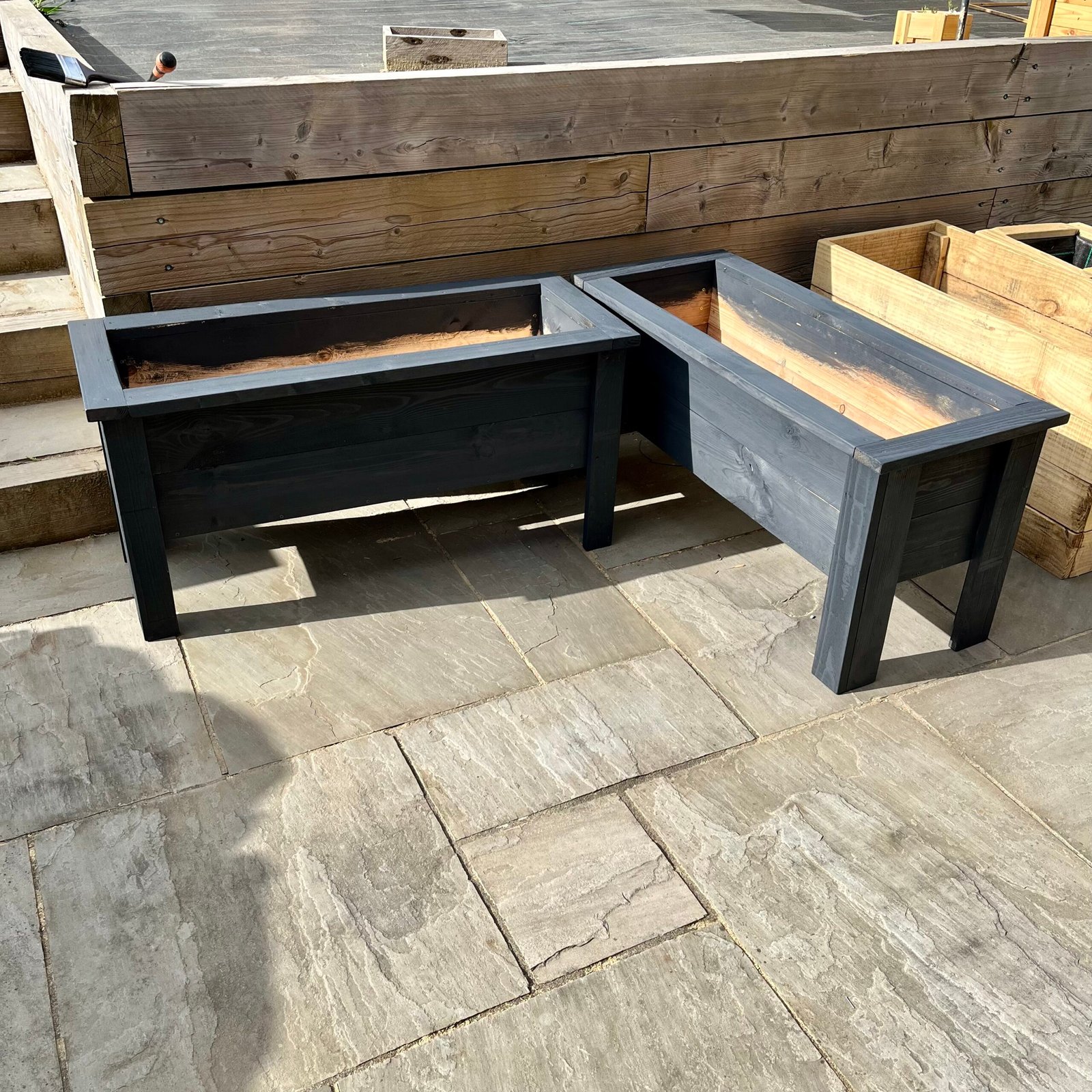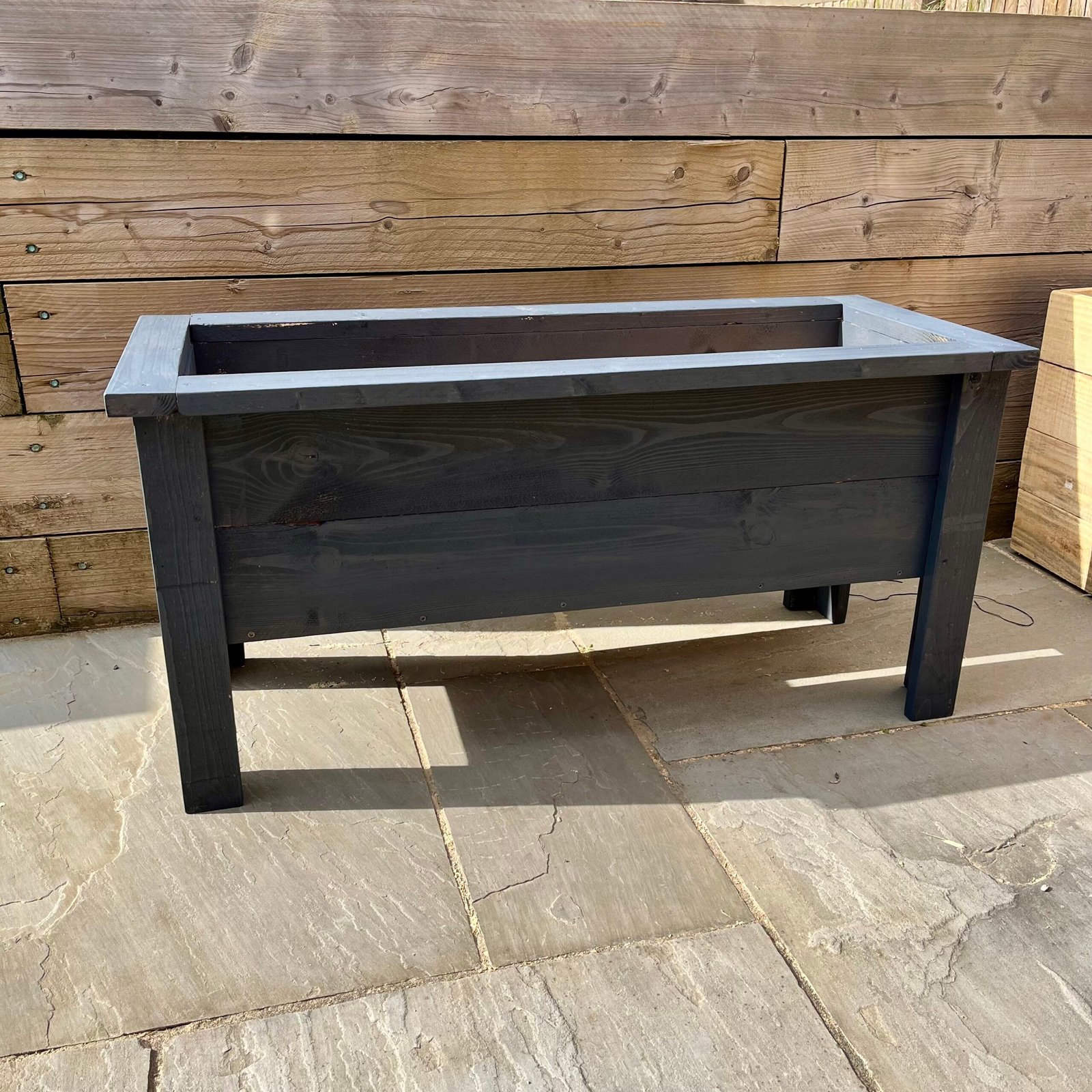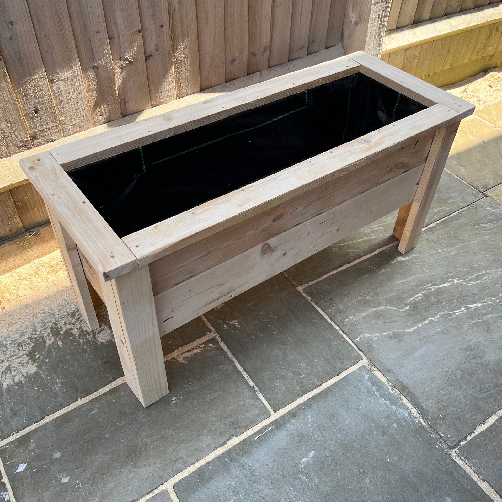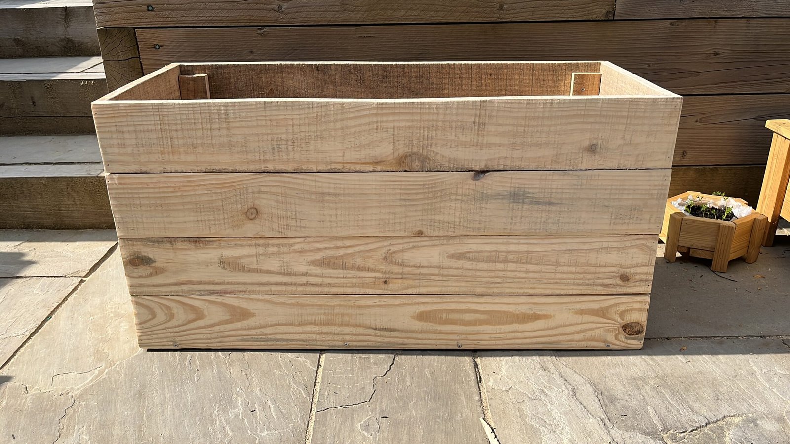 Large handmade raised wooden planter box, perfect for growing vegetables, herbs, and flowers. Rustic garden bed built from durable timber and ideal for patios, gardens, or outdoor spaces.
